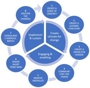 Om organisaties te helpen de succeskans van veranderingen te vergroten ontwikkelde Professor J.P. Kotter in 1996 een methode met acht succesfactoren voor verandering. Voor het slagen van een verandering, moeten volgens hem acht factoren aandacht krijgen. De resultaten zijn gebaseerd op observaties onder 400 mensen in 130 organisaties. De stappen staan in een logische volgorde maar worden niet altijd in die volgorde doorlopen. In het model combineert hij gangbare theorie uit psychologie en gedragswetenschap.