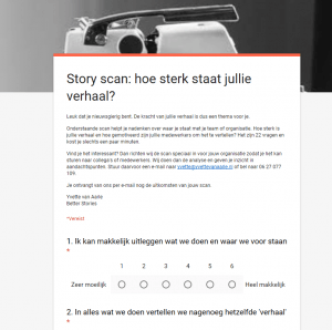 Zitten jullie intern wel op één lijn? Vertellen jullie hetzelfde verhaal en voelen jullie er hetzelfde bij? En jullie klanten? Met deze scan maken wij een eerste inventarisatie van het vertrekpunt. Lees hier meer.